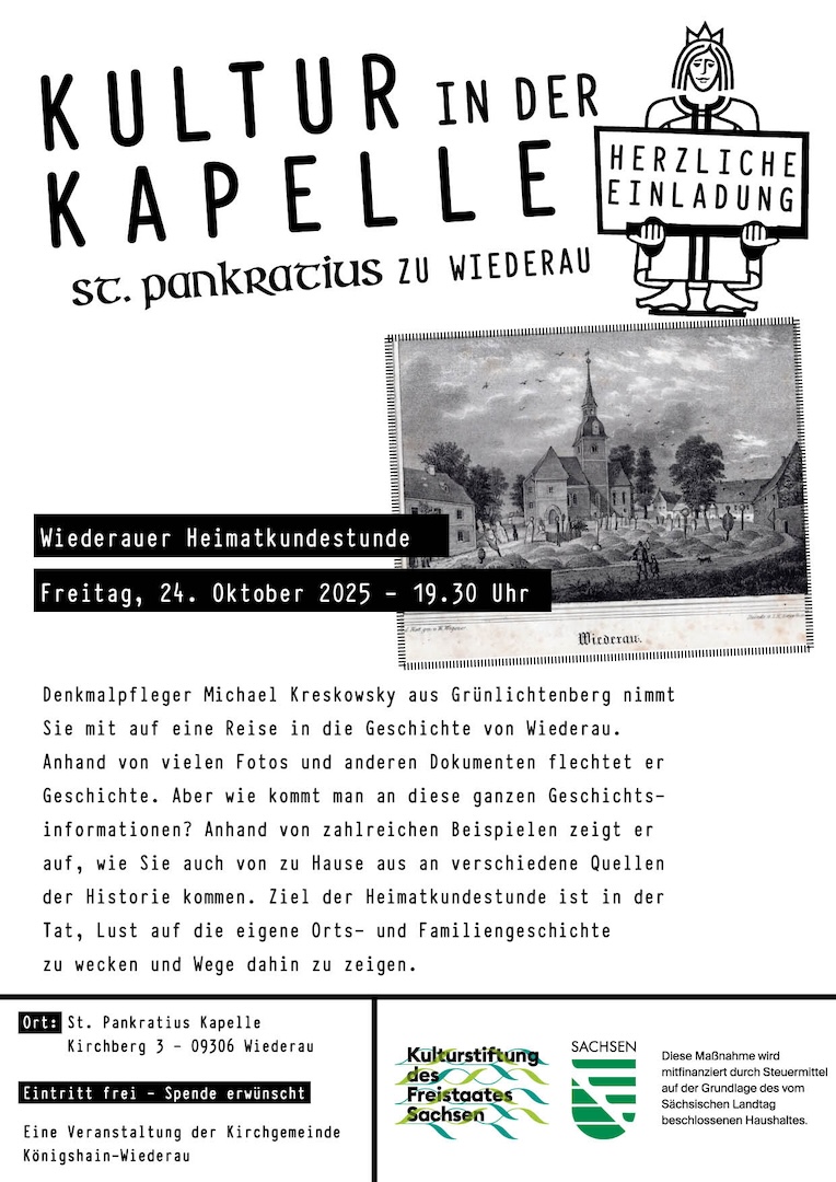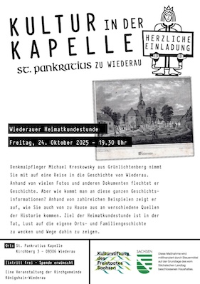 Freitag 24.10.2025, 19.30 Uhr - St. Pankratius-Kapelle Wiederau